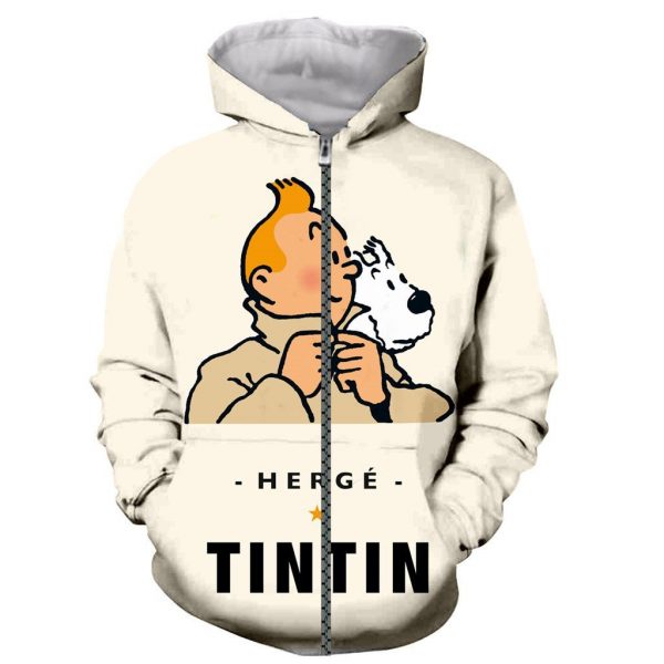 Fashion Tintin 3D Print Long Sleeves Pullover Hoodies