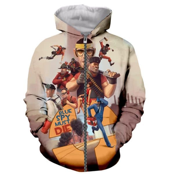 Team Fortress 2 Funny Long Sleeves 3D Printed Zipper Hoodies Sweatshirts